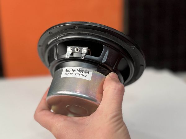 A reflexnyílás felett öntvénykosaras, gumiperemes 160 mm-es mélyközép hangszórót alkalmaztak, ahol a membrán alapanyaga polipropilén és csillám keveréke, középre egy fáziskúpot helyeztek, ami a középtartomány terjedését biztosítja magasabb szinten.