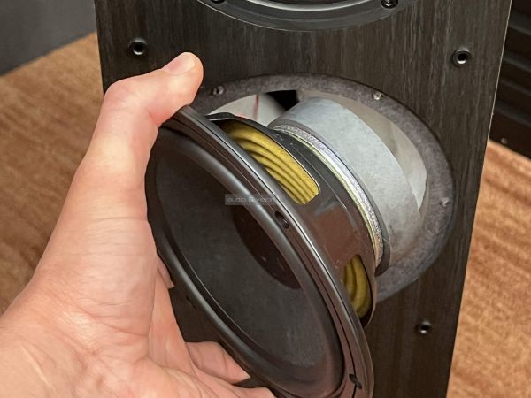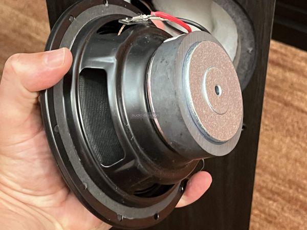 Őket követi kettő 160 mm-es, alumínium kosaras mélysugárzó, melyek nagy kitérésű membránjainak egyedi felülete a cellulózpép alapanyagnak köszönhető. A középsugárzóhoz hasonlóan, a rögzítőcsavarokat egyik esetében sem rejtették el a szemünk elől.