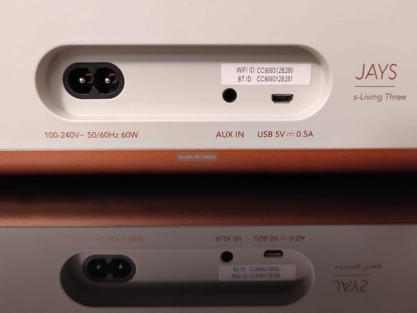 A nagyobb test (360x150x190 mm) a csatlakozókra nem volt hatással, tehát az egy-egy micro USB és 3,5 mm-es AUX-on kívül a Jays egyértelműen a hálózati lejátszás kényelméhez igazította a hangszórót, azon belül viszont minden platform elérhető, amire értelmes keretek közt egy felhasználónak szüksége lehet.
