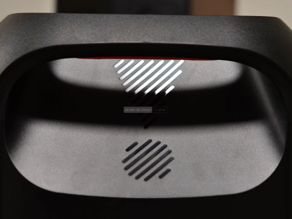 Az előlap fények nélkül visszafogott, már-már kulturált külseje abban pillanatban "felrobban" ahogy aktiváljuk a fénykavalkádot. Eddig az 1000-es teljes LED fala vitte a pálmát, az összes többi kis fénykarimája a hangszórók körül szinte gagyinak tűntek hozzá képest, de a 710-nél megtalálták az egészséges középutat, némi extrával. A mélyközép hangszórók körül egy összefüggő 8-as jellegű panelben és annak környezetében folyamatosan villognak az általunk variált színű fények, de ami ezúttal tényleg bejött, az a teljes peremen végigfutó vékony LED csíkok, amik már valóban értékelhető fényerejű "stroboszkópot" tudnak imitálni.
