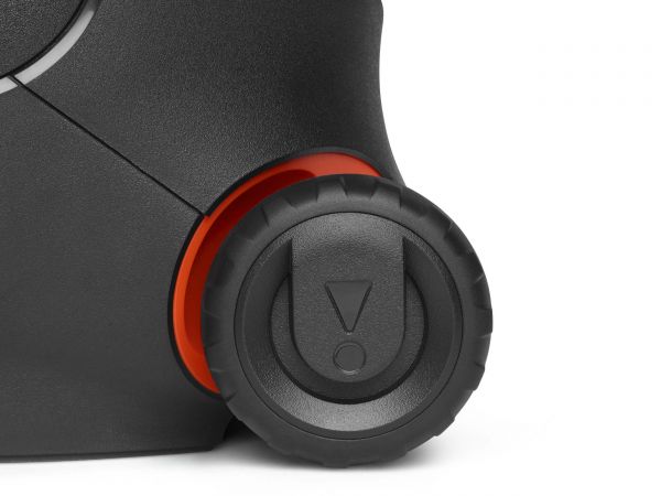 A JBL PartyBox 710 mozgatása a súlya végett nem egyszerű történet, de az 1000-eshez képest okosabban (szélesebben) elhelyezett, és amúgy nagyon jópofán formatervezett kerekek segítségével legalább nem akar azonnal borulni és kicsavarni a csuklónkat, ha átmegyünk vele pl. egy gyufán. A megfelelően vastag narancssárga oldalelemek egyrészt jól néznek ki, másrészt bármelyik oldalára fektetve kellő távolságra tartja a hangszóró testet a lehetséges karcolásoktól, így nemcsak állítva hallgathatjuk ezt a pöttöm kis jószágot. A külső kétség kívül egyre szebb lesz és lett a JBL-nél, de ami továbbra is lenyűgöző a saját világában, az az, amikor megvillannak a fények, és elhangzik a jellegzetes JBL beköszönő hang.
