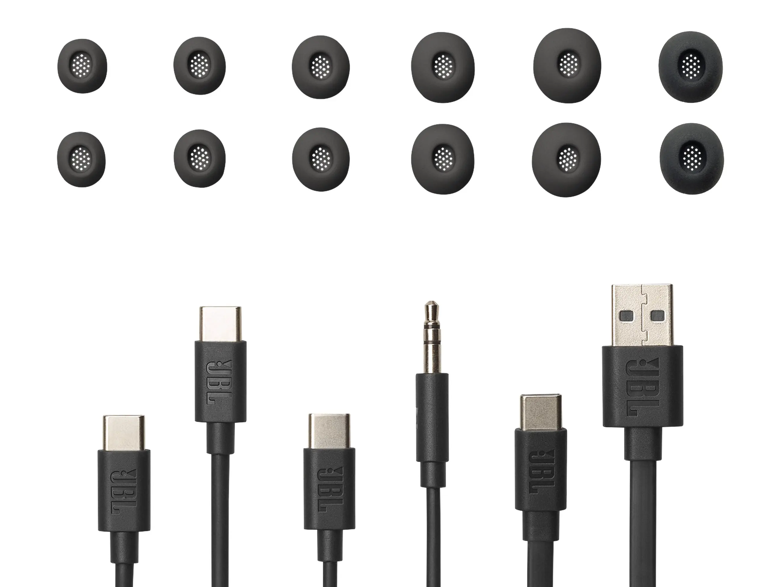 Tesztalanyunk doboza a konkrét terméken kívül szilikon fülillesztékeket tartalmaz, a széles átlagtól eltérően nem három, hanem öt különböző méretben. Első kipróbálás alkalmával célszerű mindegyiket végig próbálni, mert az aktív zajkioltást (ANC) jelentős mértékben befolyásolja, hogy mennyire pontosan illeszkedő gumigyűrűt alkalmazunk. A doboznak része két USB-C és egy USB-C/Jack kábel is. Utóbbi alkalmazásával lehetőségünk van bármilyen analóg kimenetű forrást csatlakoztatni a töltőtokhoz, hogy utóbbi a beérkező jelet vezeték nélküliként küldje tovább.