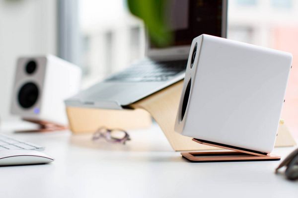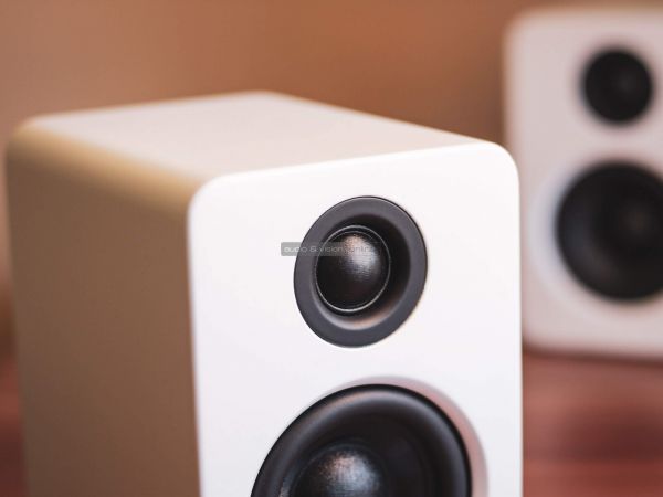 A hangfalak szokatlanul kicsik, még egy átlagos házimozi háttérsugárzónál is kevesebb helyet igényelnek. Ezért kicsomagoláskor egyenesen cuki látszatot keltenek. Az elektronikát tartalmazó, aktív hangfal parányi méretéhez képest meglepően nehéz, több mint három kiló. A passzív doboz alatt 1,3 kilogrammot mutatott a mérleg. Előlapi védőselymet nem csomagoltak melléjük, de nem baj, mert a fekete hangszórók jó kontrasztot alkotnak a világos külsővel (különösen az általunk tesztelt fehér szín esetén). A dobozok sarkait lekerekítették, ami barátságos és trendi formatervet kölcsönöz nekik.