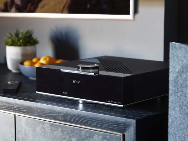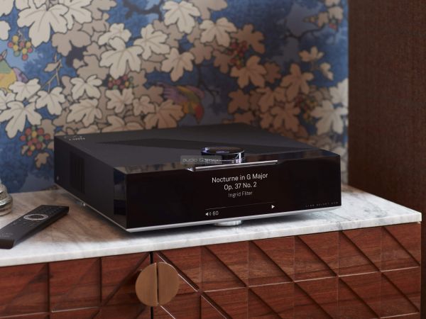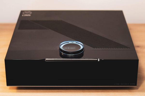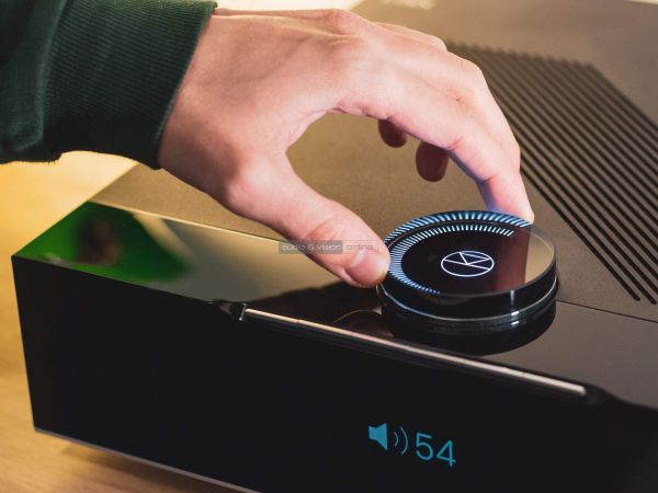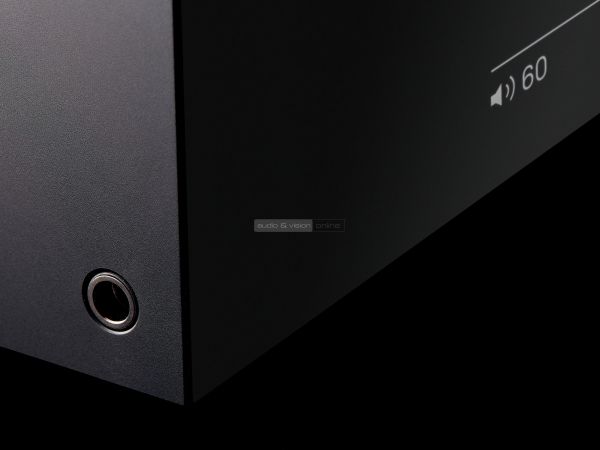 A vaskos fém készülékház három masszív lábon áll. A középsővel egyvonalban, a tető közepére helyezték el a jelszint vezérlőt (hangerő szabályzó), mely szemgyönyörködtető háttérfénnyel egészül ki. Aszerint, hogy hol tart a jelerősség (hangerősségi szint), csak addig világít a fehér fényekből álló fénykör. A háttérfény tetszés szerint kikapcsolható. Az előlap egybefüggő, fényes fekete lemez, amely mögött fehér OLED kijelző mutatja a jelszintet, aktuális bemenetet vagy egyéb információkat lejátszás közben.