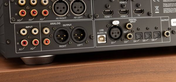 A hátoldal ízlésesen zsúfolt, a felhasználó által rendelt moduloktól függően közel házimozi erősítő szintű csatlakozó kavalkádot tartalmazhat. Nézze el nekünk az olvasó, hogy nem soroljuk fel az összes meglévő (és lehetséges) ki/bemenetet (a cikk végén megtesszük)!