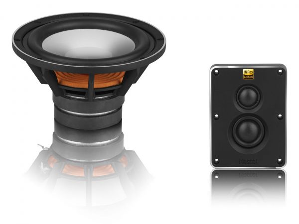 A magassugárzó egység ezek között helyezkedik el, benne két darab hangszóróval. Egyikük egy 30 mm-es extra széles peremű dóm, ami 2800 hertzen csatlakozik a középtartományhoz, így az egységes előadásban is szerepe van. A másik egy 20 mm-es szuper dóm, ami a frekvencia-átvitelt egészen 53 kHz-ig tolja ki, valamint a minden irányú hangterjedésért is felel. A két hangszórót összefogó panel a hangok optimális terjedését és eloszlását segíti, a mögéjük helyezett neodímium mágnesekkel pedig nagyobb dinamikát értek el.