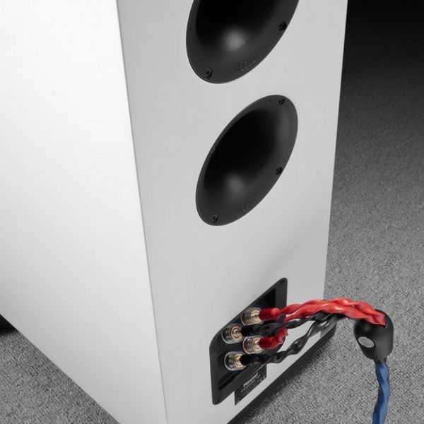 Alulról szilikon lábak segítik a hangsugárzó stabilitását, amelyekbe acél csavarokat rögzíthetünk. Ezek elég hegyesek, tehát valóban elvezetik a rezonanciát, de annyira nincsenek kihegyezve, hogy a padlónk burkolatát felsértsék. Az egész hangsugárzó minőséget és megbízhatóságot, valamint nyugalmat áraszt, viszont a 290x1072x345 mm-es termet és a darabonkénti bő 23 kg-os súly valóban más ingerre adhat okot.