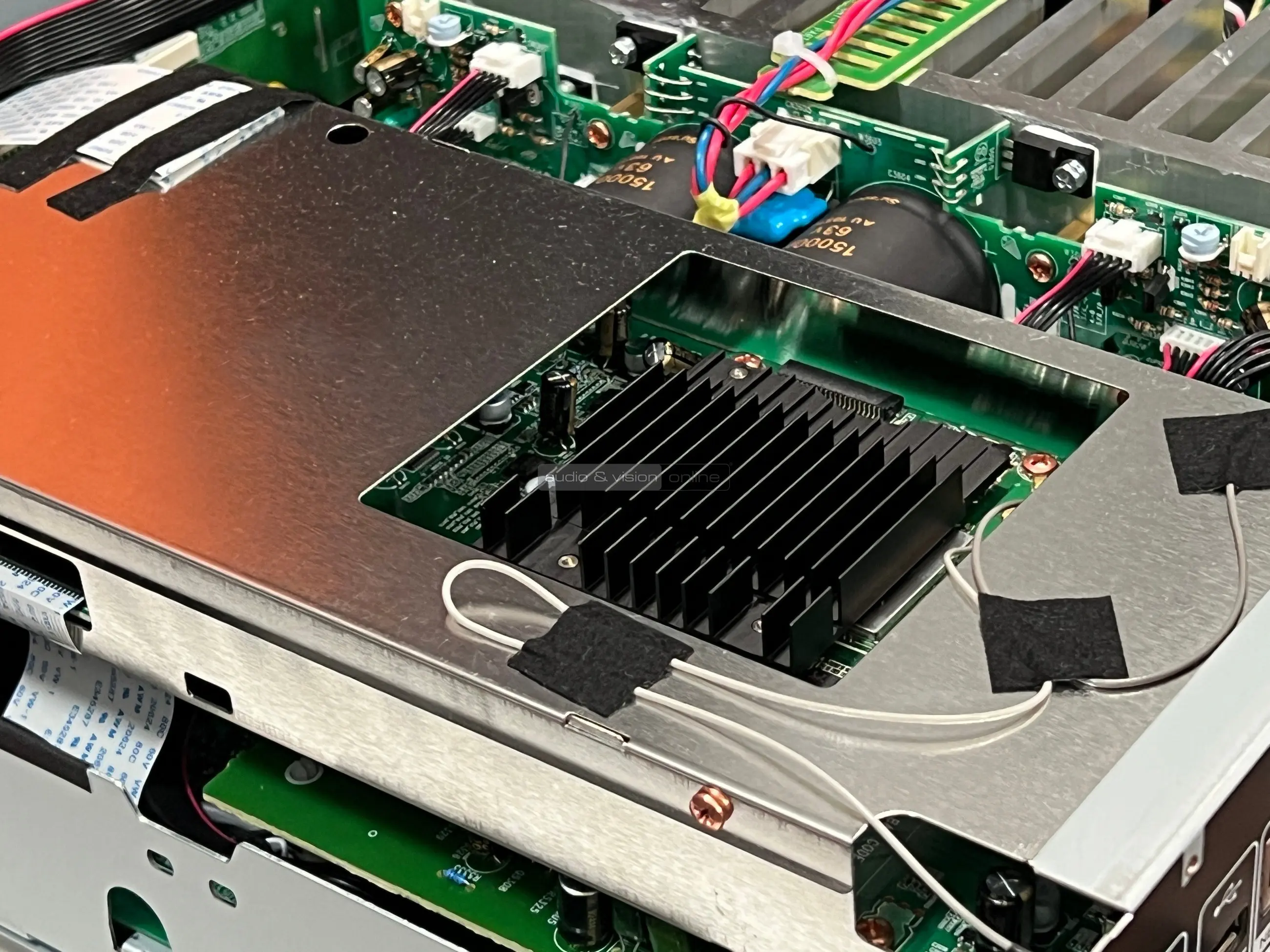 Az alkatrészek válogatottak, nagy méretű toroid trafó képviseli a készülék szívét, az áramköröket szeparálták, mindez adja ki a közel 13 kg-os tömeget, ami bizony strapabírást és megbízhatóságot jelent. Tölthetünk le applikációt is a vezérléshez, de nagy méretű rendszertávot is mellékeltek hozzá, így a vezérléssel nem akadhat gondunk.