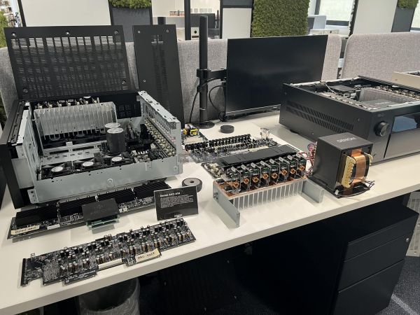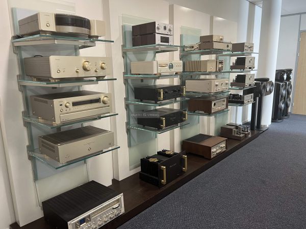 Látogatásunk helyszíne a Masimo Consumer (korábban Sound United) európai központjaként működik. Mielőtt vendéglátóink megosztották velünk az újdonságok tudnivalóit, néhány percig a Denon és Marantz meghatározó történelmi mérföldköveit szemléltük. Előttünk a polcon makulátlan állapotú, harmincéves Denon DA-QS1 és DP-QS1 vonzotta magára a tekintetet. Így párban az értéküket megbecsülni sem tudtuk. Nem kevésbé szemet gyönyörködtető a mini méretű Marantz SC-22 előerősítő és hozzá fejlesztett MA-22 végerősítő, de bármelyik polcra néztünk, a rajta lévő ereklyét zokszó nélkül vittük volna magunkkal, vagy legalább egy számot meghallgatunk volna vele. Jó érzés volt látni, hogy a cégcsoport nem fordít hátat e gyártók történelmének, mintha önmagukat is emlékeztetnék a kiállítással, hogy ne hagyják veszni a múlt értékeit.
