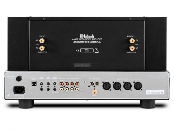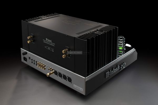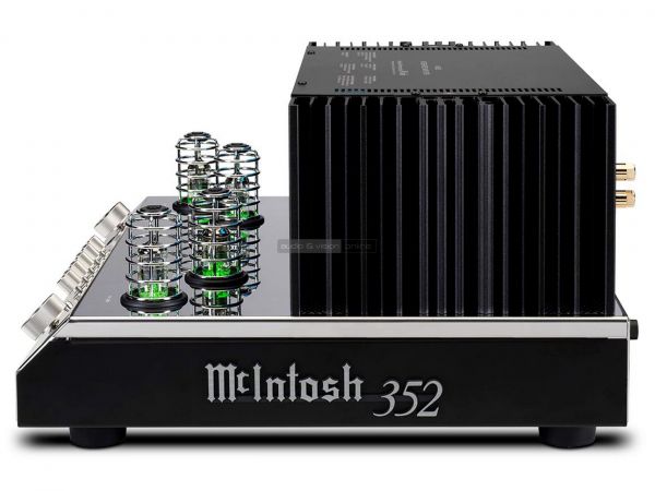 A McIntosh MA352 igazi nehézsúlyú erősítő: csomagolva 34 kg, minden irányban terjedelmes dobozba rejtve. Mi tagadás, kihívást jelentett szállítása és elhelyezése. A dobozból kicsomagolva a klasszikus McIntosh dizájn jelenik meg, ami csöves illetve hibrid erősítőiken egyaránt tetten érhető. A hatalmas transzformátorok masszív hűtőbordák alatt dolgoznak, míg a 12AX7 és 12AT7 típusú előfok csövek, csatornánként kettő, előttük helyezkednek el.
