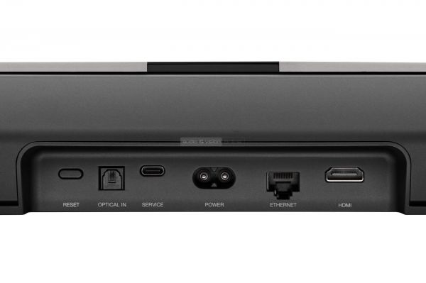 Minden csatlakozó hátul, egy középső mélyedésben helyezkedik el: optikai, HDMI eARC, Ethernet, továbbá egy borotva (vagy másik nevén piskóta) tápkábel aljzat. Ezeket kiegészíti még egy szerviz csatlakozó és egy újraindításra szolgáló gomb. A hangrendszer ára e sorok írásakor 400 000 forint, amibe egy falikonzol is beletartozik.