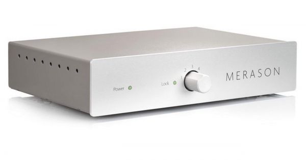 Ha nem tévedünk, az ilyesmi kinézetű masinákat nevezünk letisztultnak, hogy finoman fogalmazzunk, a Merason eme terméke nincs igazán túlbonyolítva (legalábbis az előlapon). Ott mindössze egy bemenetválasztó kapcsoló büszkélkedik, mellette zöld fényű LED ad tájékoztatást a bejövő forrásról, helyesebben csak egy Lock felirat adja a tudtunkra a bemenet váltás tényét. Illetve a bal oldalon még egy bekapcsolást jelző, szintén zöld fényű lámpácska világít és ezzel a végére is értünk a felsorolásnak.