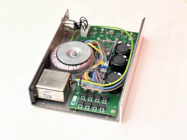 A hozzáadott tápegység egy normál, egyszerű darab, de ezt ki lehet váltani a gyártó saját, különálló tápegységével, igaz az erősen megdobja az árát.