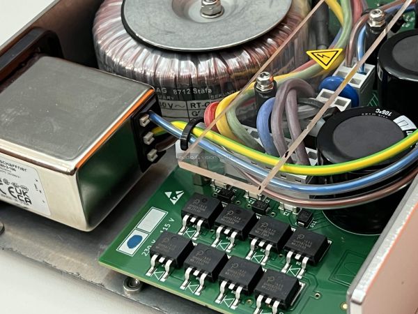 A D/A átalakítóról kijövő feszültséget A osztályú erősítéssel viszik tovább a kimenetekre négy, egymástól független csatornán, azaz lényegében kettős monó kialakításban. Minden funkcionális egységnek saját tápegysége van, és összesen tíz darab van belőlük, ergo ezt sem lehet kifogásolni. A tervezés és összeszerelés is Svájcban történik, ami eléggé ritkaságszámba megy a mai világban.