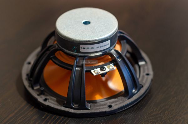 A három darab 16,5 cm-es, narancssárga (régi Ikarus buszhoz hasonló) MMP (Metal Matrix Polimer) mély és mélyközép membrán bármilyen távolságból magukra vonzza a tekintetet, és emellett, a fémrészecskékkel töltött polipropilén anyag, könnyű és nagyon merev is egyben.