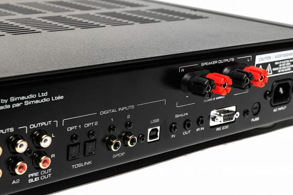 Remekül tükrözi a Simaudio rugalmasságra való törekevését a trigger (esetünkben SimLink) aljzatok jelenléte, mellyel a többi erre alkalmas készülékkel is egyszerűen kommunikálhat a 240i, illetve az RS232 csatlakozó is jelen van, ha okos otthonunk szerves részévé akarjuk tenni kanadai barátunkat. A sok pozitív pont mellett azonban kissé csalódás volt az egyszerű fekete/piros műanyag banándugós kábelcsatlakozó szorítója. Ebben az árban már szívesebben látjuk az aranyozott alkatrészeket, de tény, hogy a funkcióját ellátja ez is.
