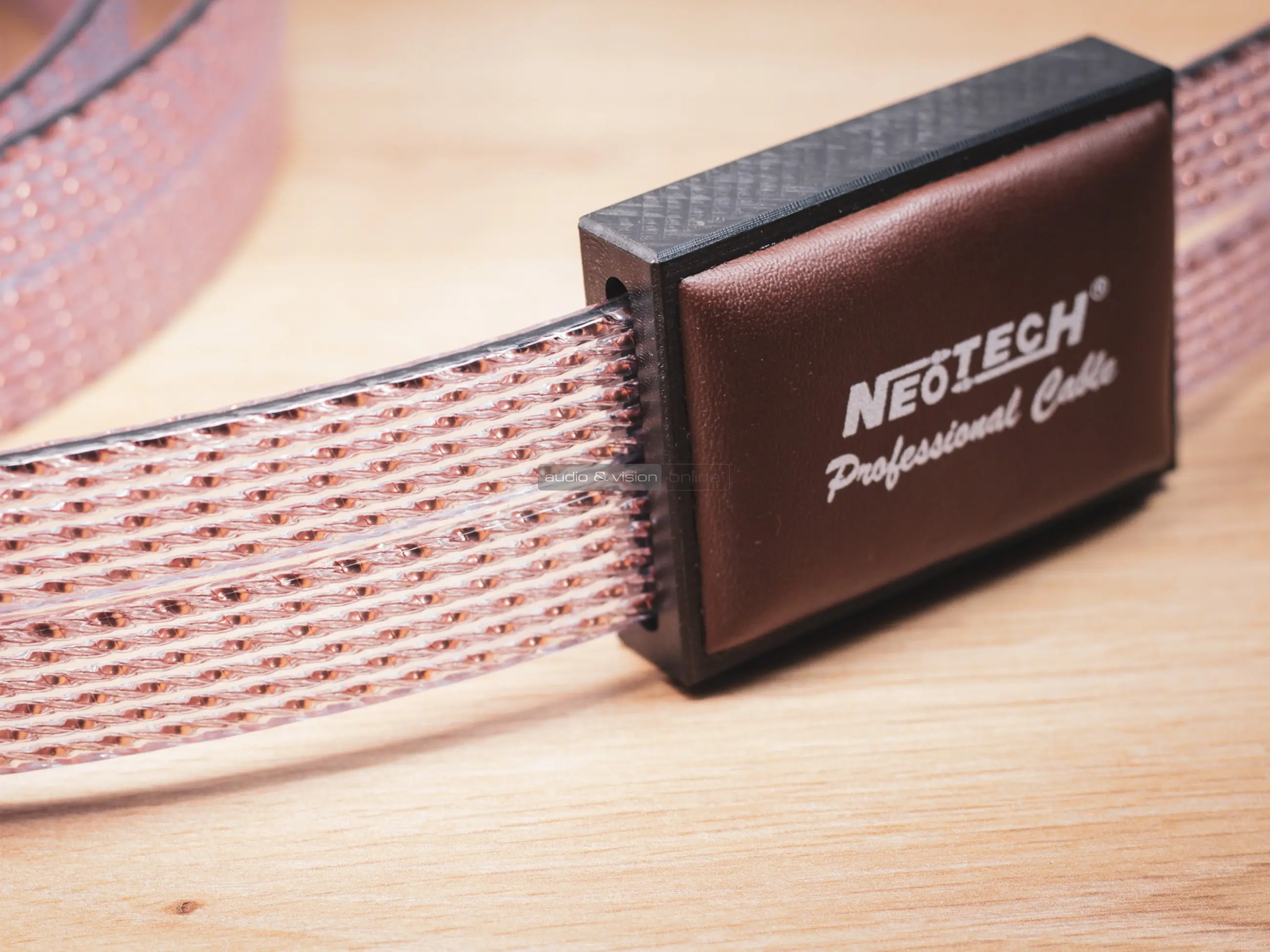 A Grand hangfalkábel némileg más kivitel, mint a család többi tagja. Nem kör metszetű külső köpennyel, hanem lapos formával rendelkezik. 2x12 darab vezetőcsatornája egy szalag jellegű formát eredményez. A benne lévő rézcsíkok monokristályos rézből készültek (OCC technológia), utóbbi a Neotech prémium termékeiben rendszeresen visszatérő részlet. Viszont az olcsóbb kivitelektől eltérően itt nem PVC, hanem teflon belső szigetelést alkalmaznak minden egyes vezetőszálon. A külső szigetelőanyag átlátszó PVC (a legfrissebb kiadáson saját fotóinktól eltérő, fekete-szürke kábelharisnya található).