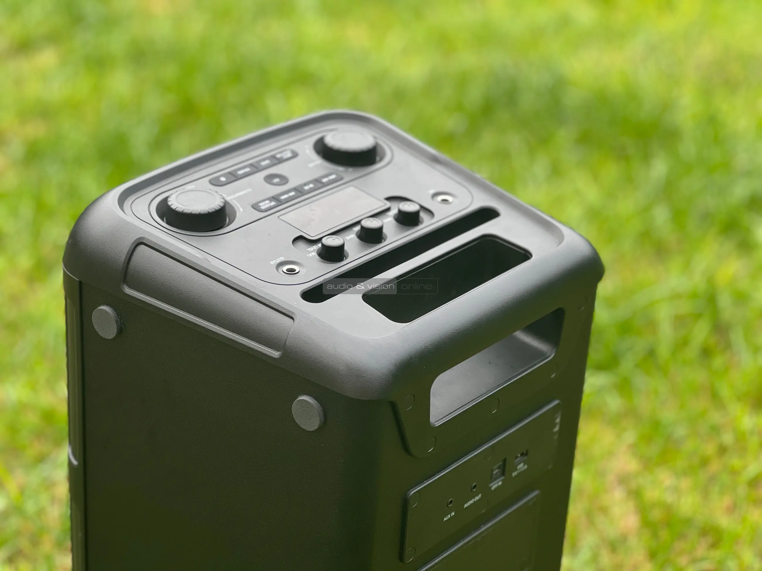 Mivel ehhez a party hangszóróhoz nincs távirányító, sem pedig applikáció, lényegében mindent a kezelőpanelen tudunk végrehajtani. Felsorolni nem szeretnénk minden egyes gomb vagy tekerentyű funkcióját hisz a képek magukért beszélnek, de nagyon szimpatikus az elrendezés, a megjelölések és az egész vezérlés logikája.