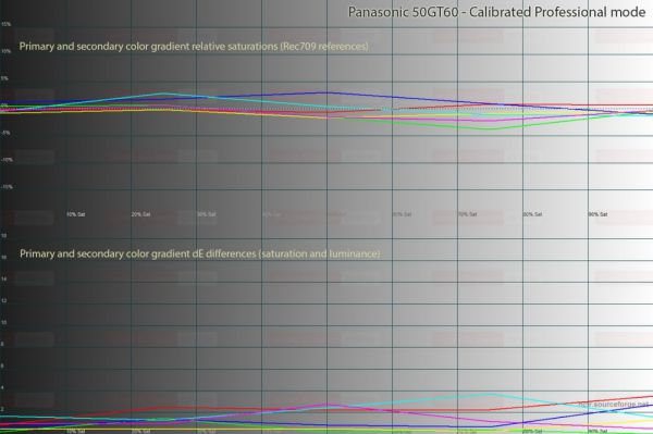Örömmel nyugtáztuk azt is, hogy a 42ST60-nal ellentétben itt működni látszik az 1080p PureDirect kapcsoló. Az eredmény még mindig nem tökéletes, mert enyhén torzul a chroma térkép, de képhibákat már nem okoz a bekapcsolása, viszont sokkal többet őriz meg így az RGB vagy YCC 4:4:4 formátumok chroma felbontásából, mint e nélkül (és úgy a TV-k általában az ilyen speciális kapcsolók nélkül). Bár ez gyakorlatilag csak azokat érinti, akik PC-ről játszanak videó-játékokat a tévéjükön. Nekik, és játékkonzolt használó társaiknak is jó hír, hogy az 50GT60 érezhetően gyorsabb, mint a 42ST60. Bekapcsolt Game móddal nincs zavaró mértékű input lag, és bár a PureDirect ad ehhez egy kicsit, de még úgy is tolerálható (ha nem is online FPS-hez, de mondjuk egyjátékos kalandozáshoz).