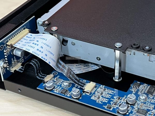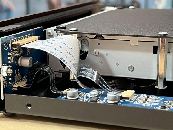 A frontoldalra a már említett mechanika nyílása mellett egy 1,54 colos, színinverziós funkcióval ellátott kijelző került, ami minden lényeges információt megjelenít, valamint az alap funkciógombok. Semmi más, hiszen el sem férne, továbbá semmi szükség nincs rájuk. A kijelző ugyan lehetne szélesebb is, így több minden megjelenhetne rajta, de így is stílusos, továbbá illik a minimalista dizájnhoz. Hátul sztereó vonalkimenetet találunk, továbbá egy digitális koaxiálist, amivel a készülék futóműként üzemeltethető, ha külső DAC-ot szeretnénk hozzá csatlakoztatni. Az optikai kimenetet feleslegesnek találta a Pro-Ject, ragaszkodtak ahhoz, hogy a CD Box S3-at arra használják, amire való. CD-lejátszáshoz.