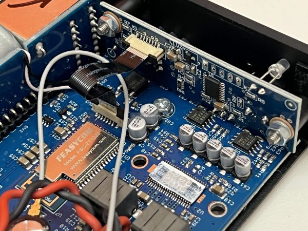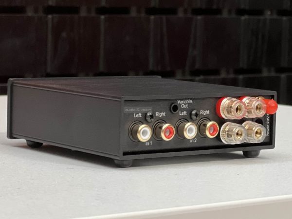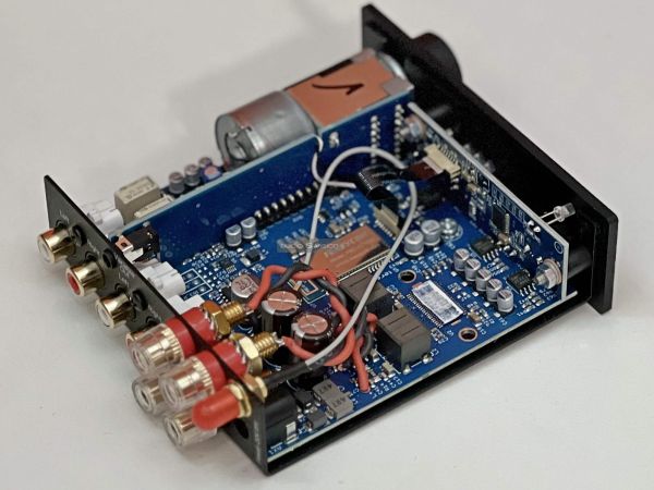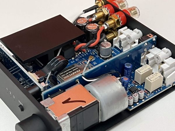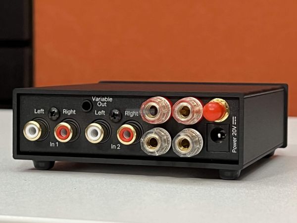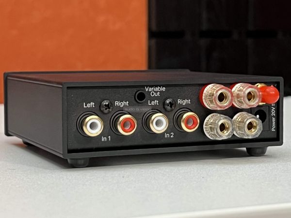 A hátoldalon kettő pár aranyozott sztereó bemenetet kínál a Pro-Ject Stereo Box S3 BT, továbbá aptX HD 5.0 verziójú Bluetooth fogadóegységet, amivel akár 24 bit/48 kHz-es felvételeket is lejátszhatunk. A hangfalkimenetek is aranyozottak, teflonvédelmet is kaptak, tehát igényesek, képesek banándugókat is fogadni, de mindenképpen ajánlott vékonyabb drótokat alkalmazni, mert elég közel vannak egymáshoz, továbbá a súlyuk könnyen elmozdíthatja magát az egész készüléket. Az erősítő elegendő energiával rendelkezik ahhoz, hogy egy átlagos érzékenységű hangfalat meghajtson, hiszen 4 ohmon 2x40 watt teljesítmény leadására képes, de a 3,5 mm-es Jack kimenetre további erősítőt, aktív hangdobozt vagy mélynyomót csatlakoztathatunk. Az áramellátást ebben az esetben is külső tápegységről oldotta meg a Pro-Ject, ami tulajdonképpen nagyobb és nehezebb, mint maga az elektronika, tehát ennek is keressünk egy stabil helyet.