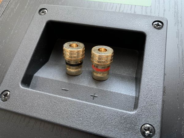 A basszreflex port hátra került, bele elég mély csövet helyeztek, alá pedig szimpla, aranyozott csatlakozókat. A 170x302x271 mm-es termethez darabonként 5,6 kg-os súly jár, azonban ebben az esetben is el kell mondanunk, hogy annyira stabilan sikerült az összeszerelés, hogy jóval többnek érezzük a tömegét.
