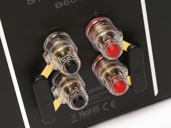 A B600 lábait az IsoAcoustics konkrétan a PSB-nek tervezte, az elcsatolás jobb mikro-részleteket, szélesebb hangteret és precízebb képalkotást eredményez. A hangdoboz hátsó oldalára tekintve találjuk a lekerekített peremű reflexnyílást, valamint ide is jutott a króm díszítésből, ami szintén egy alumínium lemezt keretez.