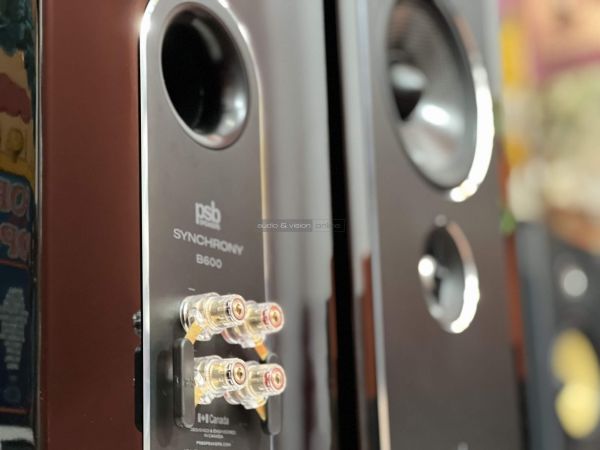 A PSB továbbra is a természet szépségéből és erejéből építi fel filozófiáját, ami Kanadáról lévén szó, tulajdonképpen adott is, hiszen a világ összes fájának és csodás tájának jelentős része ott található. Synchrony szériájukkal a magasabb elvárásokkal bíró közönséget célozták meg, ami a megépítettségben és minőségben mutatkozik meg elsősorban, a felesleges cicomát továbbra is messziről kerülik. Persze apró díszítőelemeket alkalmaztak, de szó nincs túlzásokról, vagy feleslegesen bevetett dizájnelemekről. Tulajdonképpen igazuk is van. A Synchrony B600 egy normálméretű, basszreflex rendszerű, kétutas állványos hangdoboz, aminek oldallapjai párhuzamosak, fényes fekete vagy kézzel válogatott, párokhoz igazított szatén diófurnér kivitelben választhatók, hozzá akusztikailag semleges, mágnesesen rögzíthető védőszövet, és opcionálisan hozzá tervezett, a fellépő rezonanciát elnyelő állványt kínálnak.