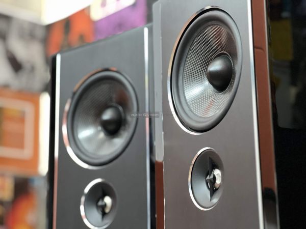 Ahogyan írtuk, sok "csicsa" nincs a felületen, de ami díszítést találunk, az pont elég. Fényes krómbetét a hangszórók pereménél, valamint két függőleges sáv, ami az előlapon fut végig. Itt észrevehető, hogy az ezeket közrefogó felület egy 5 mm-es, tömör alumínium terelőlemez, és a finom részletek elénk tárásában segít, amiben társa a doboz kiterjedt belső merevítése, ami minimalizálja a rezonanciákat, amelyek egyenetlen reakciót és elmosódott tranzienseket okozhatnak.