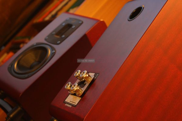 A hátlap nem kevésbé takaros, bár elsőre majdnem kinevettük szegény basszreflex nyílást, mely első és második ránézésre is szokatlanul szűknek tűnt. Ma, mikor a gyártók a legkülönfélébb módját találják meg eme idom turbulencia csökkentés miatti geometriai formálásának, tágításának stb., konzervatívnak hat egy ennyire kompakt kipufogó. De hát hetvenévnyi tapasztalattal nem tévedhetnek, nemde? A banándugó kompatibilis aljzat is talán a felesleges formaságok egyike, de attól még felüdülés használni. Míg a közelmúltban sok hangfalba úgy kellett beleerőszakolni a QED automata zárfejes csatlakozóját, addig ugyanaz a kábel valósággal beleugrott a Quad hátába. A szorítófejek fogása, a feliratozás, minden beleillett az összképbe.