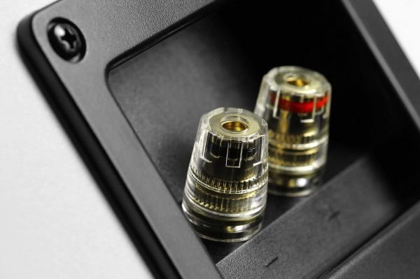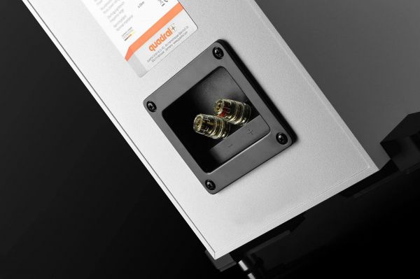 Az egészet egy öntött alumínium gyűrűbe integrálták, a rögzítését pedig belső csavarozással oldották meg. A quadral Signum 70 háromutas, basszreflex hangsugárzó, a kimeneti nyílásait hátul találjuk. Átmérőjük nem túl terebélyes, viszont a peremek szépen lekerekítettek, a beépített csövek megfelelő hosszúságúak. Az egyikük a középsugárzó munkáját segíti, a másik viszont lent található a mélysugárzók mögött, a teflonszigetelésű, szimpla hangfalcsatlakozó felett.