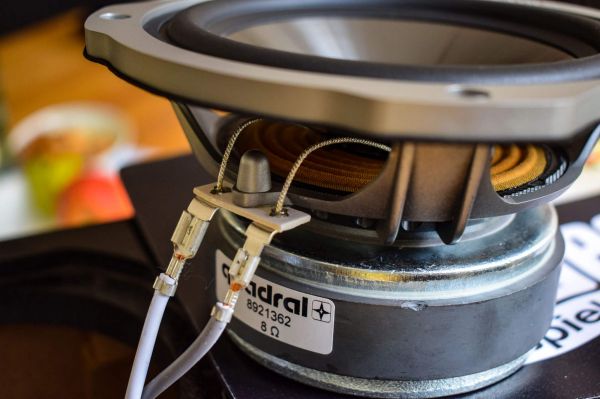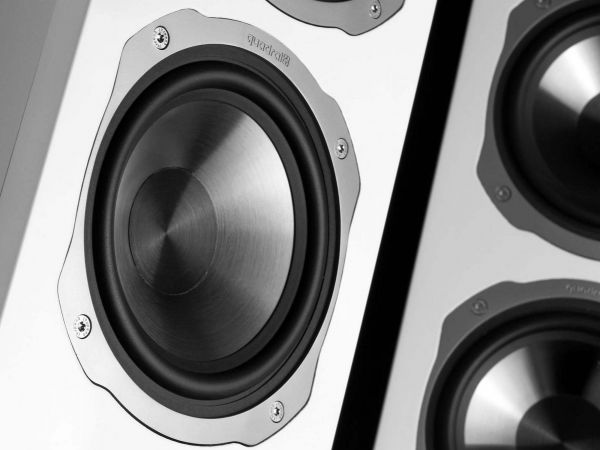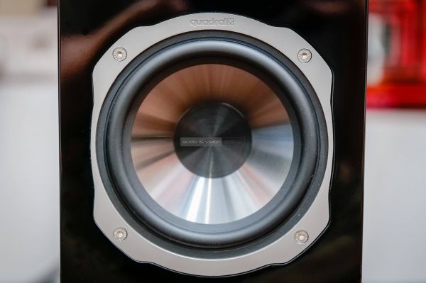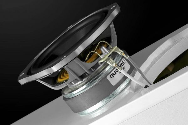 A hangszóróselyem eltávolítása után a quadralnál jól bevált alumíniumkosaras hangszórókból hármat találunk, amelyek membránjának anyaga a már ismert, és eddig is jól bevált Titanium PP. Az alsó kettő ebből a mélyszekcióért felel, és külön kamrában dolgozik, hogy a felette található középsugárzó munkáját ne zavarja. A méretük minden esetben 155 mm, ami a fejlett technológiának köszönhetően már nem okoz meglepetést.