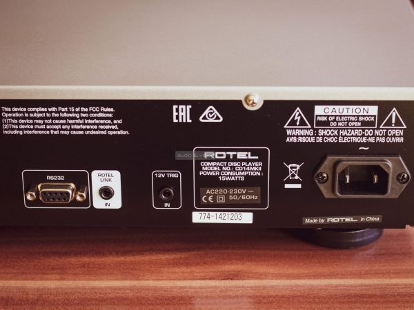A CD14MKII hátulján a márkán belül már megszokott képet találjuk, hiszen az analóg kimenet mellett digitális is fogad minket, tehát a készülék szimpla futóműként is üzemeltethető. Az RS-232, a 12 voltos trigger és Rotel LINK segítségével cégen belüli komponensekkel illeszthetjük össze, ami lehet tuner, de streamer is, valamint mindezek együttes vezérléséhez elegendő egy rendszer-távvezérlő, használata egyszerű, köszönhető ez a megfelelő méretének és a gombok logikus elhelyezésének.