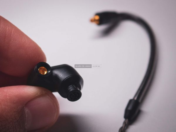 A hangszórókat tartalmazó rész formaterve ugyanaz, mellyel az IE sorozat nagyobb tagjainál is találkoztunk. Egyszerűsítés, hogy nem fémből, hanem műanyagból készült. Négygrammos tömegével hihetetlenül könnyű, diszkrét matt fekete, sima tapintása jó minőségérzetet sugall. A tetszés szerint cserélhető kábel MMCX csatlakozóval illeszkedik bele. A forrás felőli oldalra 3,5 mm-es Jack csatlakozót szereltek. Egyeseknek hiányérzetet okozhat, hogy 4,4 mm-es Pentaconn dugós opció nem része a csomagnak. Később tetszés szerint vásárolható hozzá ilyet tartalmazó kábel, számos cég készít az IE 200-zal kompatibilis alternatívát.