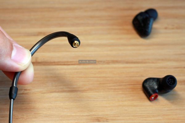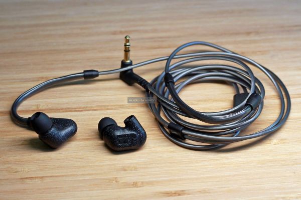 A 125 cm hosszú kábel para-aramid rost erősítésű, az olcsó, kommersz vezetékekhez képest egyértelműen strapabíróbbnak tűnt. A hangszórókamrákba MMCX, a forrás felőli oldalra pedig 90 fokos, 3,5 mm-es aranyozott sztereó Jack dugót szereltek. Utóbbi háza műanyagból készült, viszont a mellkas előtti Y-elágazás elegáns fém külsőt kapott. A csomagolás részét képezi még egy tisztító eszköz is, amellyel a gumi illesztékben rekedt szennyeződéseket távolíthattuk el.