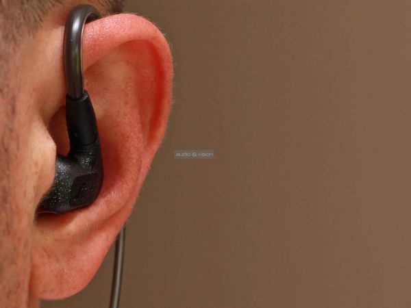 Az IE 300 formája a fülkagyló mélyedésének adottságait kihasználva képes kitölteni a rendelkezésre álló helyet (anélkül, hogy kilógna oldalirányba), miközben az átlósan felfelé kivezetett, belső merevítéssel ellátott horogszakasz beakasztható a fül mögé. A professzionális IEM fülhallgatóknál szokványos kialakítás most sem okozott csalódást, kifejezetten jó komfortot és stabilitást kaptunk. Sétálni, kocogni is szívesen magunkkal vittük a fülhallgatót, mivel szépen besimult a helyére, kábele a mellkashoz érve nem zörgött.