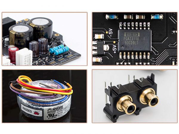 Térjünk vissza még kicsit az S.M.S.L VMV A1 előlapjára, ahol a jobb szélen találhatjuk a jókora hangerőtárcsát, aminek precizitásában van szerepe a már említett PGA2311 chipnek, ami nagy pontosságú és ultraalacsony torzítású hangerőszabályzó. Ez lehetővé teszi a hangerő pontos beállítását, így érzékeny hangdobozokkal vagy fül- és fejhallgatókkal is könnyen párosítható. Igen, a gyártó a készüléket elsősorban állványos hangfalakhoz vagy fülesekhez ajánlja, ráadásul mindkettőt egyforma lelkesedéssel, hiszen az A osztályú FET végfok átkapcsolható normál erősítő és fejhallgató erősítő mód között. A váltást az előlapról egy gomb segítségével valósíthatjuk meg, ahogyan a némítás funkció is innen érhető el. A hangerőtárcsa közepén apró LED-et találunk, a pereméről pedig belemehetünk a menübe, ahol állíthatjuk a kijelző fényerejét, valamint választhatunk a low és high hangkép közül, amelyek között első olvasatra annyi lehet a különbség, hogy eldönthetjük, a készülék lágyabban vagy határozottabban, keményebben muzsikáljon nekünk.
