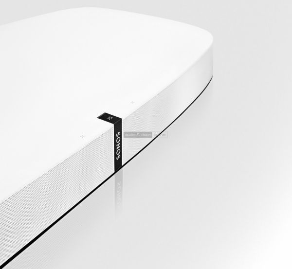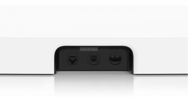 A hangsugárzó nincsen túlpakolva mindenféle csatlakozóval, mivel a tápkábel szomszédságában mindössze egy optikai és egy Ethernet található a hátlapon. Nem találunk analóg bemenetet vagy HDMI aljzatot sem. Ha csupán a PLAYBASE fő funkcióját nézzük, ezek nem létszükségletek, de tény, hogy a hangfeldolgozás így korlátozódik PCM sztereóra (sajnos az is 24 helyett csak 16 bites fájlokig) és Dolby Digital hangsávokra. A Sonos vélhetően úgy gondolkodik, hogy aki DTS, TrueHD vagy hasonló jellegű 5.1/7.1 filmeket kíván nézni, az specifikusabb rendszert keres.
