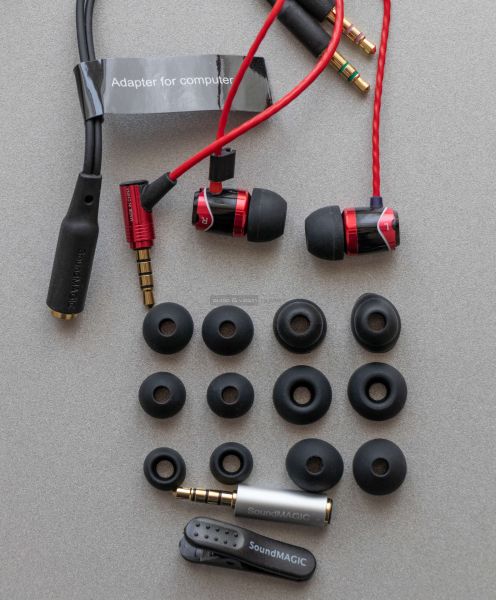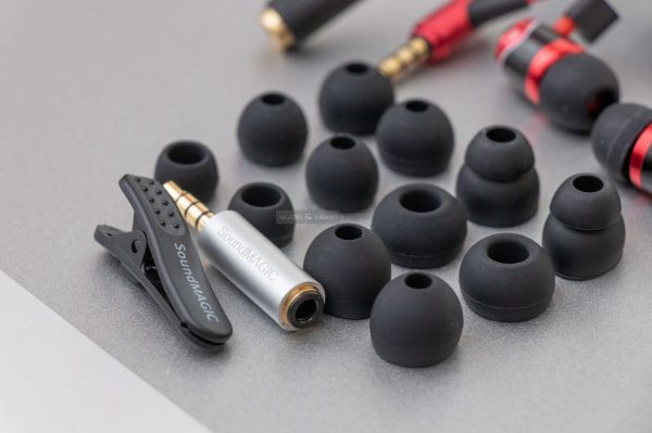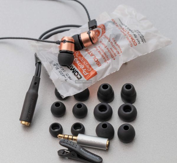 A fülhallgatók kényelmét nagyban befolyásolja a hozzájuk adott füldugó típusa is. Ezúttal a SoundMAGIC mindegyik modell mellé legalább 7 párat mellékel. Ezek között találunk 2-2 pár kicsi, közepes és nagydarabot. Egy-egy szűk és nagycsatornás változatot mindből. Emellett mindegyikhez jár egy duplaharang kialakítású is. Ezen felül, az E50 egy közepes, az E80 pedig kicsi, közepes és nagyméretű Comply füldugó illesztékeket is ad. Talán ezek a legkényelmesebbek, de erről nyilván megoszlanak a vélemények, hiszen ahány fül, annyi érzés.