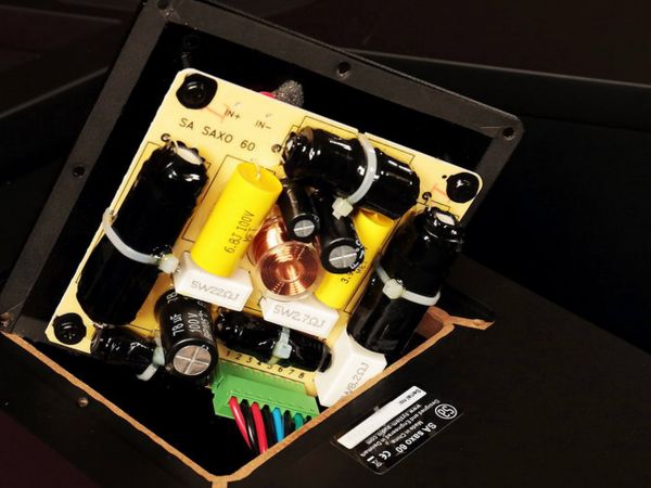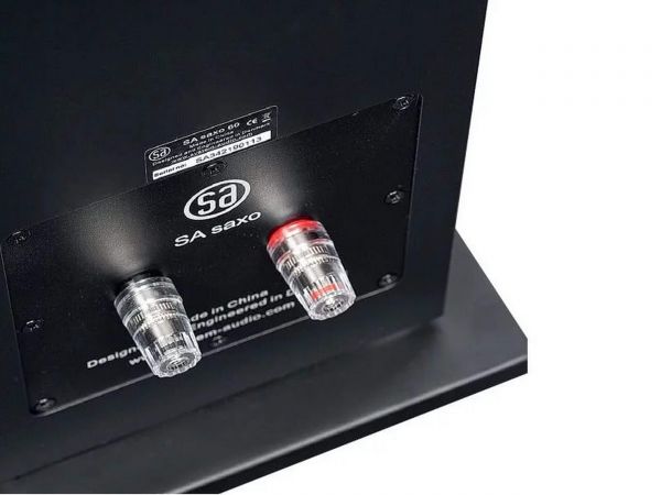 A saxo SA 60 tehát alapvetően egy háromutas hangdoboz, ami basszreflex rendszerű. Kijáratát hátul találjuk az alsó szegmensben, hogy az említett kettő darab mélysugárzó munkáját segítse. A csatlakozó szimpla, de minőségi darab, banándugók fogadására természetesen alkalmas.