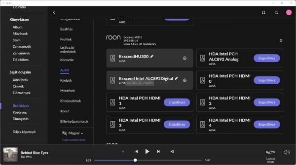 Innentől kezdve a Roon appal tudjuk kezelni, de megvan a lehetőség arra is, hogy a PC-re telepített és azonos helyi hálózatban lévő Roon programmal vezéreljük, ami pont ugyanazt tudja, mint az okoskeszközre telepített társa.