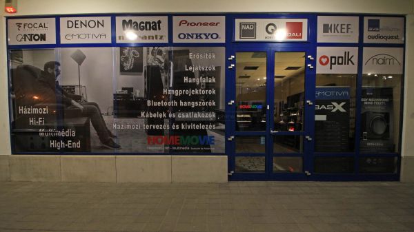 Immár új, a korábbihoz képest tágasabb és világosabb szaküzlet nyújt otthont a Home Movie kínálatának, melynek elsődleges célja továbbra is a forgalmazott termékek megismertetése testközelből, kipróbálási/meghallgatási lehetőséggel és szaktanácsadással. A bolt színes és informatív kirakata már messziről is tudtul adja, hogy odabent minőségi audio eszközök várják a látogatókat, nem is akármilyen felhozatallal.