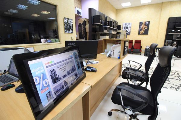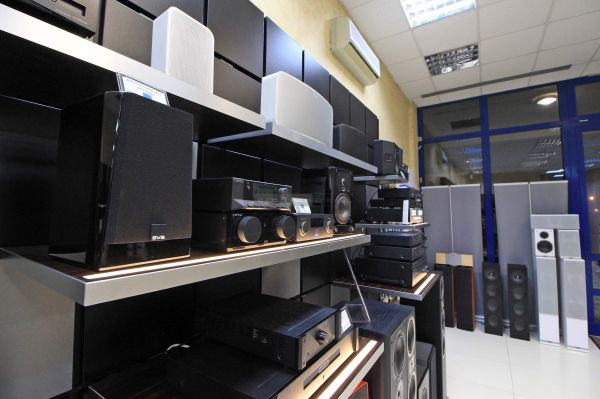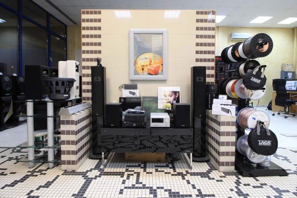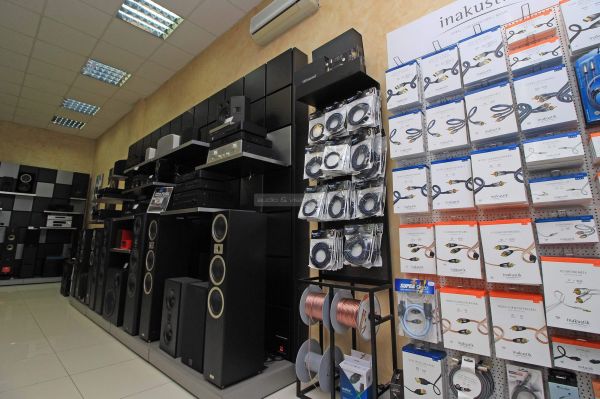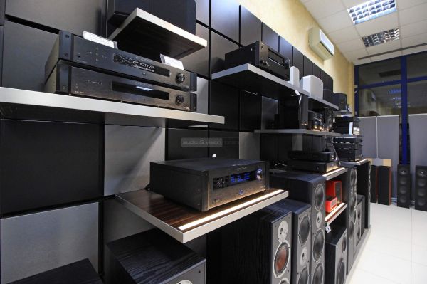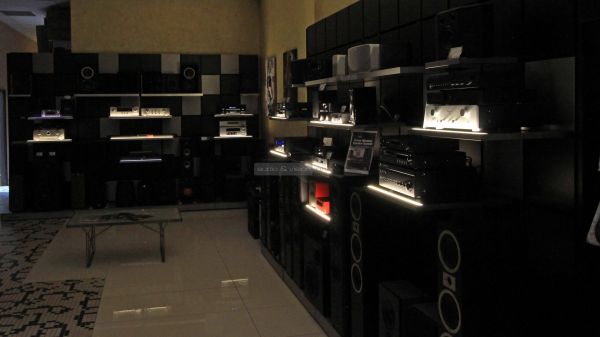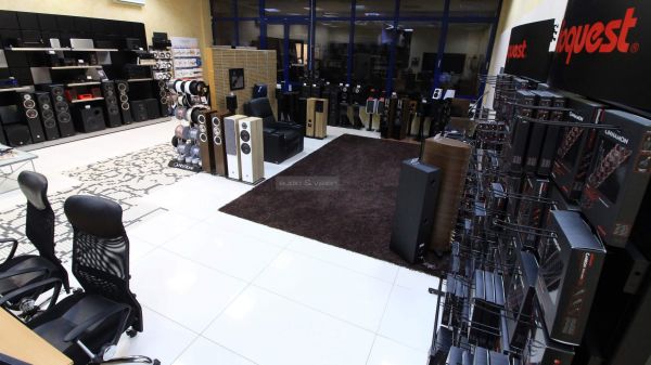 A bolt fő terme (eladótér) alapvetően két blokkra osztható, a fal mentén katonás rendben sorakozó "kisebb" rendszerekre és a puha szőnyeg túlsó felén tisztelgő, magasabb kategóriás sztereó komponensekre. Előbbiek gombnyomásra megszólalnak és polcokba rejtett hangulatvilágítással vonzzák magukra a figyelmet.