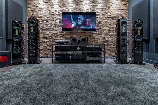 Itt a nagyobb házimozi rendszereké a főszerep, amit ottjártunkkor Triangle hangfalakkal, Yamaha és Musical Fidelity erősítőkkel illetve végfokokkal valósítottak meg. A forrás ezúttal egy OPPO lejátszó volt, a tiszta tápfeszültségről pedig AudioQuest szűrő gondoskodott.