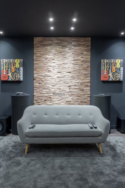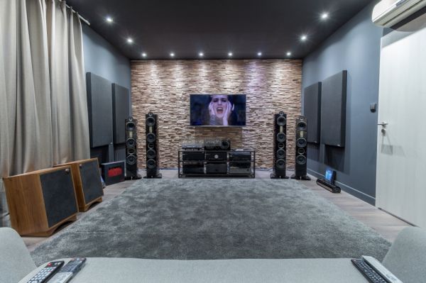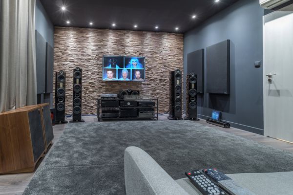 A szoba elejében, éppen úgy, mint manapság a legtöbb otthonban, egy LCD TV adja a képet, amit természetesen rejtett kábelezés köt össze a forrás elektronikákkal.