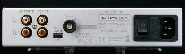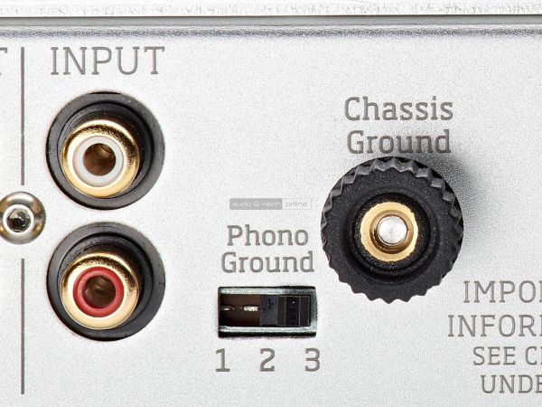 A készülék hátlapján a főkapcsolót, egy IEC tápcsatlakozót, RCA be és kimeneteket, valamint egy föld csatlakozót találunk. Ez utóbbi mellett kapott helyet még egy kapcsoló, ami a phono ground elnevezést kapta. Ez a rugalmasságot szolgálja, háromféle beállítást kínál: Hard Ground, Soft Ground, illetve Ground Lift üzemmódokkal. Így gyakorlatilag bármilyen integrált- vagy előerősítőhöz csatlakoztathatjuk a PHONO-1-et úgy, hogy egyik esetben se jelenjen meg zavaró, földzaj jellegű búgás. A beállítás tekintetében akkor járunk el helyesen, ha a PHONO-1 zajmentesen csatlakozik az utána kötött eszközhöz.