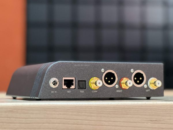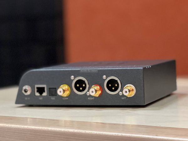 Hátulra Ethernet, koaxiális, optikai bemeneteket és RCA, valamint igen dicsérendő módon XLR kimenetet is szereltek és itt leljük fel a külső tápegység (5 V/2,4 A) bemenetét is. Mivel számtalan hasonló teljesítményű tápegység van a piacon, így a kísérletező kedvű hifistáknak adott a tuning lehetősége, ha netán cserélni szeretnék a gyári tápegységet.