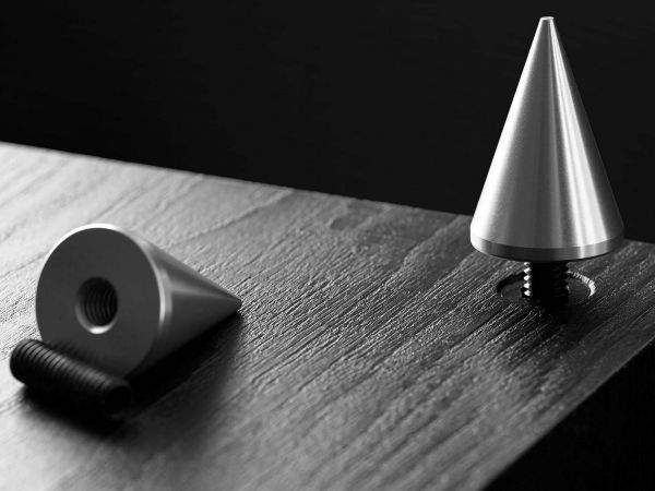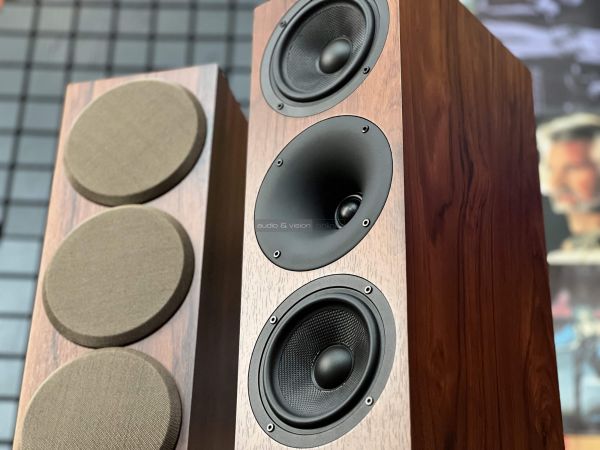 A Dániában fejlesztett és tervezett STUDIO 7 falai vastag MDF lapokból készültek, a borítása ezúttal is lehet füstölt tölgy vagy dió színű és mintázatú, a kivitelezés pedig abszolút megfelel a kategóriában elvártaknak. A mágnesesen rögzíthető hangszóróselymeken sem változtattak, amelyek a burkolathoz igazodva fekete vagy bézs színűek. Míg az állványos doboznál négy darab talpacska biztosította a stabilitást, itt négy darab réz kúpot vagy inkább tüskét mellékeltek, amik felcsavarozhatók. Ezek is igazodnak a kivitelhez, tehát ezüst vagy sárgaréz színben kerülnek a dobozba, ahogyan a selymet díszítő cégnév is. A kúpoknak elsősorban akkor vesszük hasznát, ha szőnyeg van a lakásban, a tervezők viszont gondoltak a parkettás vagy köves felületre is, hiszen biztosítottak a számunkra vékony alátéteket, így a kúpok és a padló sérülését is kizárhatjuk.