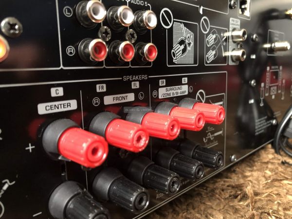 A Yamaha legújabb üdvöskéje a beüzemelés kapcsán némi ambivalens érzést váltott ki belőlünk. Nagy termete eleve nem indokolt a súlyához képest, de ez még nem eredendő bűn. Talán az sem, hogy a hangerő potmétere nem a legkifinomultabb és legstabilabb, de ezt a funkciót úgy is zömmel a távirányítóval vagy a MusicCast alkalmazással fogjuk használni. A hátlapon a hangsugárzó csatlakozók alapvetően csak csupasz kábelvégeket fogadnak, ahogy ez egy ábrán is megtalálható mellettük. Ez a mára puritánná vált csatlakozási mód ugyan kiküszöbölhető, hiszen a műanyag betéteket ügyesen (facsavar belehajtásával) kipiszkálva már fogadja a banándugókat. A kijelző kellően informatív, jól is mutat, továbbá gyorsan reagál, bár kétméteres távolságból sokat már nem lehet belőle látni. Hasonló reakciókat váltott ki belőlünk a televízión megjelenő menü is, ami könnyen kezelhető, átlátható, de lehetne valamivel részletesebb is. Talán soknak tűnik a kukacoskodásunk, és nem egetverő problémákról van szó, de az elvárásaink már ebben az ársávban is jogosak, főleg a versenytársak jelentős számának tekintetében.