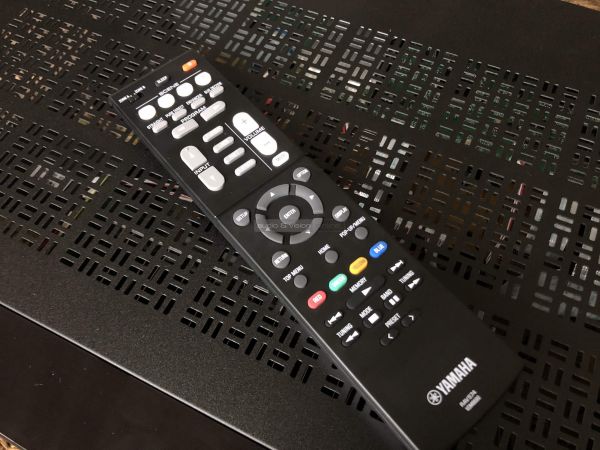 Hátul is folytatódik az áttekinthetőség, ami elsősorban annak köszönhető, hogy az RX-V4A 5.2 csatornás, így csupán az ezeket megkívánó számú és hétköznapi kivitelű hangsugárzó csatlakozók foglalnak helyet, a mélysugárzó kimenetet, ahogy illik, RCA aljzatok biztosítják. Audio bemenetből is ötöt találunk, ezek közül három analóg, 1-1 pedig koaxiális és optikai. HDMI bemenetből a 4 darab bőven elég, viszont az egy darab kimenet tényleg csak az alap, egy modern készüléken, megnyugtatóbb lett volna, ha legalább egy duplázást bevetnek. A Blutooth jel vételére szánt antenna bal oldalra került, a rádióvételhez szükséges antenna csatlakozó pedig középre. Ugyan képes a készülék a DAB állomások fogadására is, sajnos idehaza ez a szolgáltatás szeptembertől megszűnt, így marad valódi, kihasználhatatlan extrának. Nem úgy az Ethernet aljzat, valamint a cég MusicCast rendszeréhez tartozó jeltovábbító. A tápkábel fix, a mellékelt távirányító pedig normál méretű, a funkciógombok logikus elhelyezésűek, tehát a használatával nem akadhat problémánk. Fontolgattuk, hogy mekkora negatívumnak tekintsük az IEC aljzat hiányát, végül arra jutottunk, hogy nem tragédia, hiszen minimalista, belépő készülékről van szó. Bár biztosak vagyunk abban, hogy egy jobbfajta tápkábellel lehetne valamicskét javítani a hangzáson, de azt a pénzt, amibe kerülne, más rendszertuningra is el lehet költeni. Ha valaki mégis ragaszkodik a minőségi kábelezéshez, pár ezer forintért szereltethet erre a kis Yamahára egy megfelelő csatlakozót.
